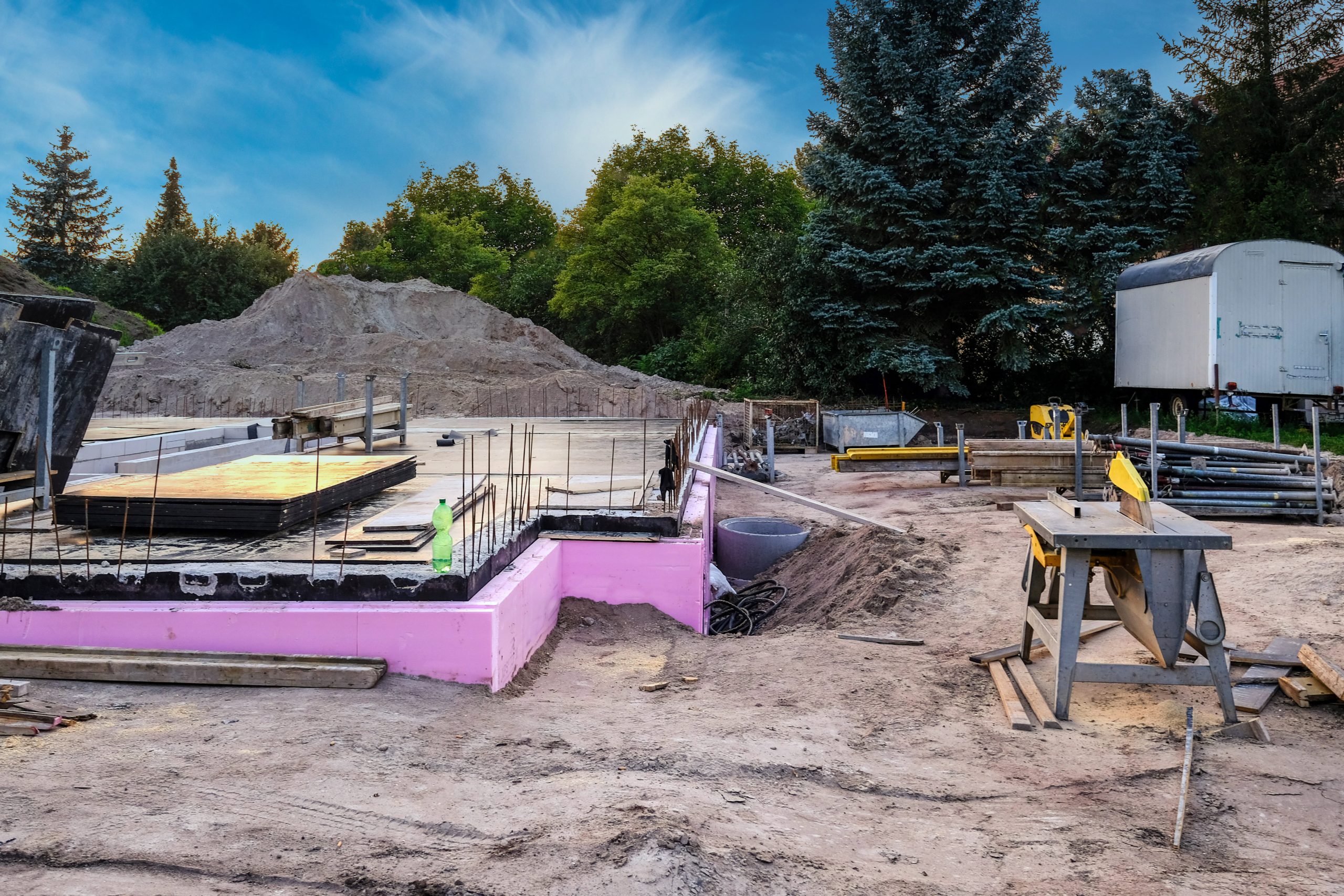 Foundation with the basement of a new house